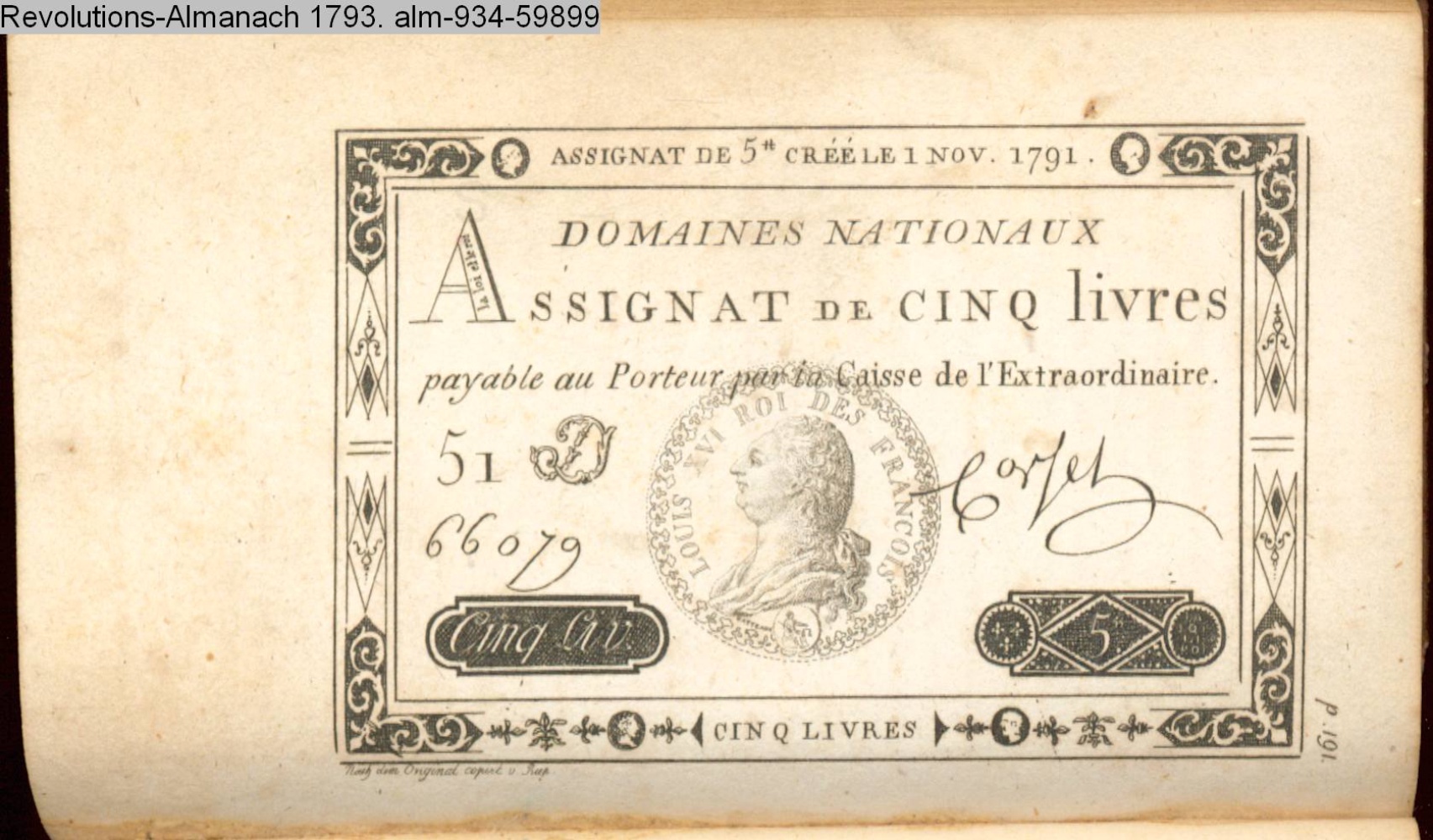 Assignat de 5 L. CRÉÉ LE 1 NOV. 1791