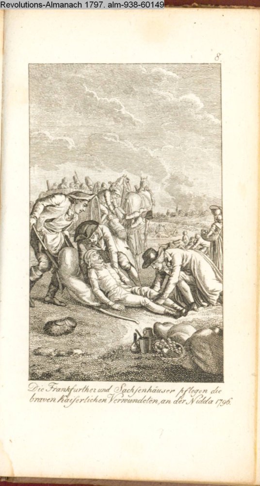 8. / Die Frankfurter und Sachsenhäuser pflegen die / braven kaiserlichen Verwundeten zu Nidda 1795