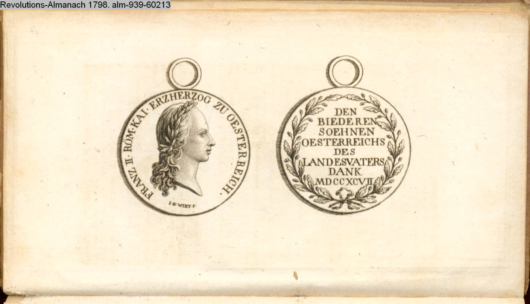 FRANZ II. RÖM. KAI. ERZHERZOG ZU OESTERREICH / DEN / BIEDERN / SÖHNEN / OESTERRICHS / DES LANDSVATERS / DANK / MDCCXCVII