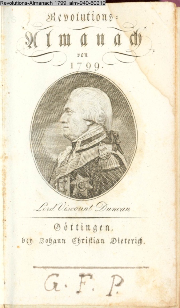 Revolutions- / Almanach / von / 1799. / Göttingen, / bey Johann Christian Dieterich