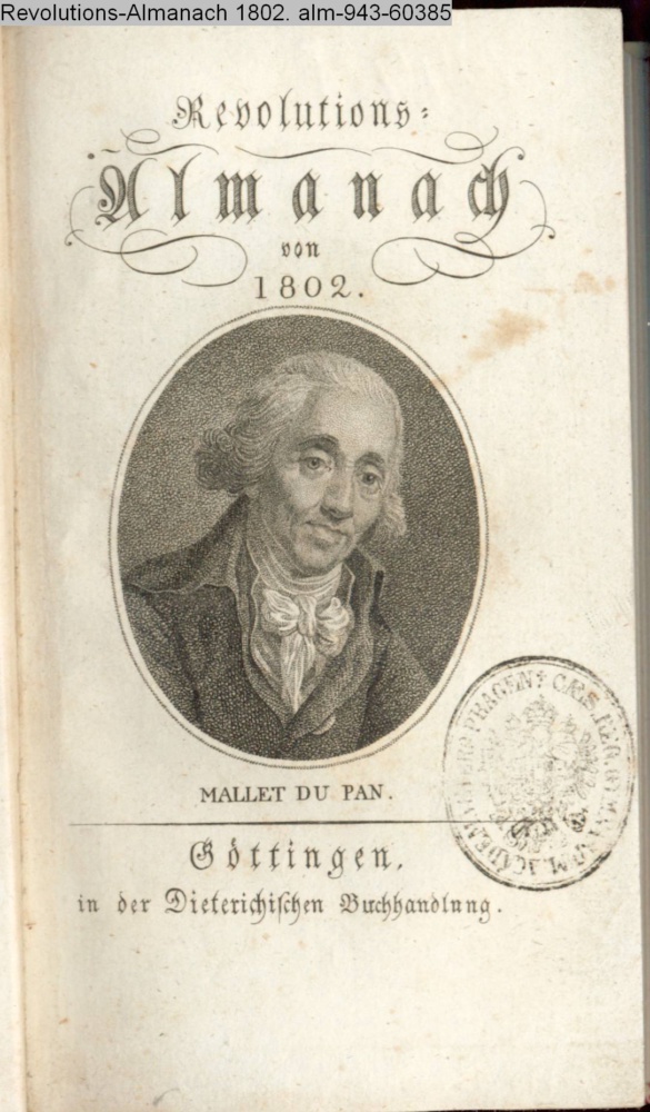 graph.-typograph. Titel mit Portrait Mallet du Pan s. Textbezug