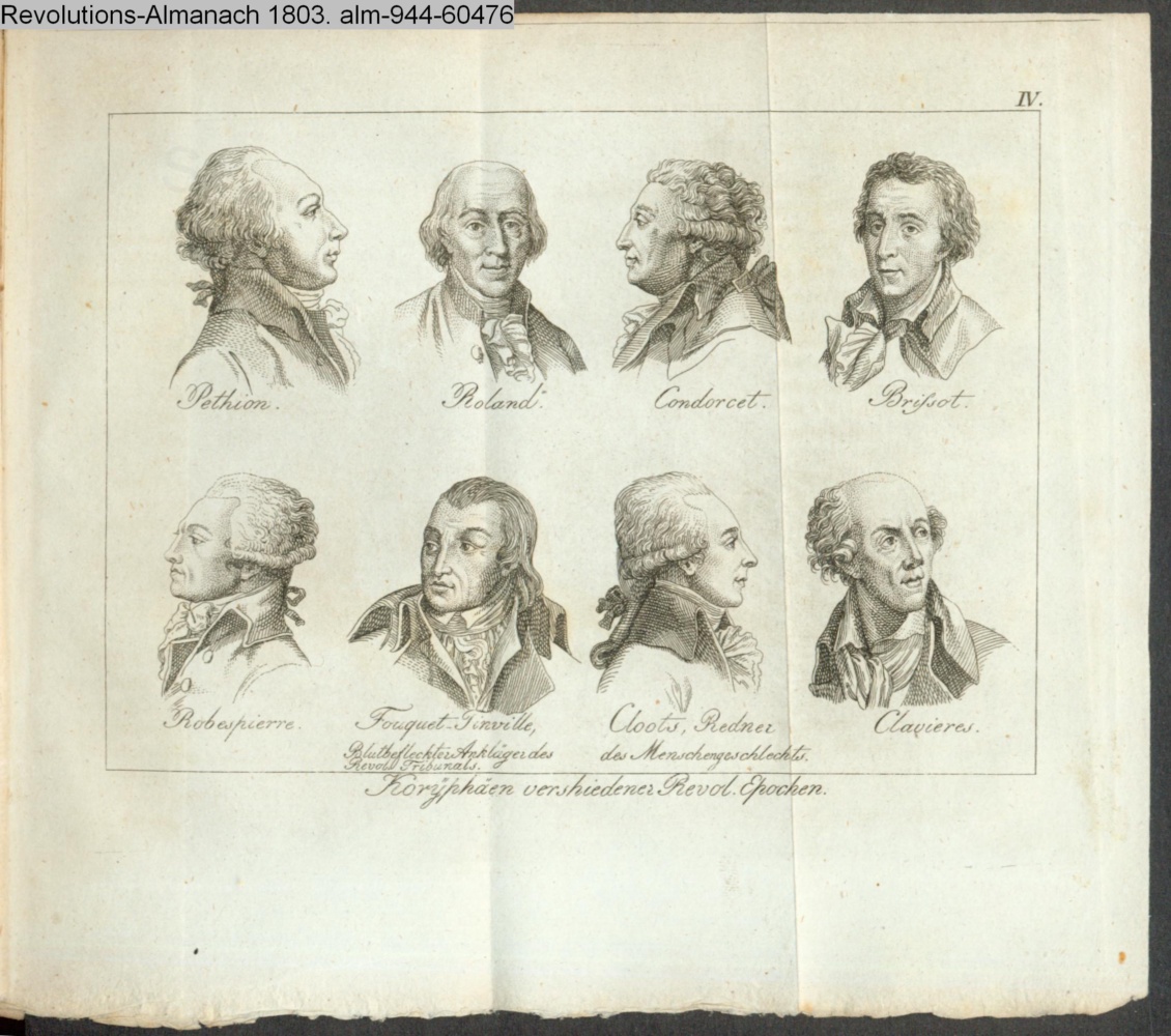 Pethion. Roland. Condorcet. Brissot. / Robespierre. Fouquet Tinville, Blutbefleckter Ankläger des Revol. Tribunals. Cloots, Redner des Menschengeschlechts. Clavieres // Koryphäen verschiedener Revol. Epochen