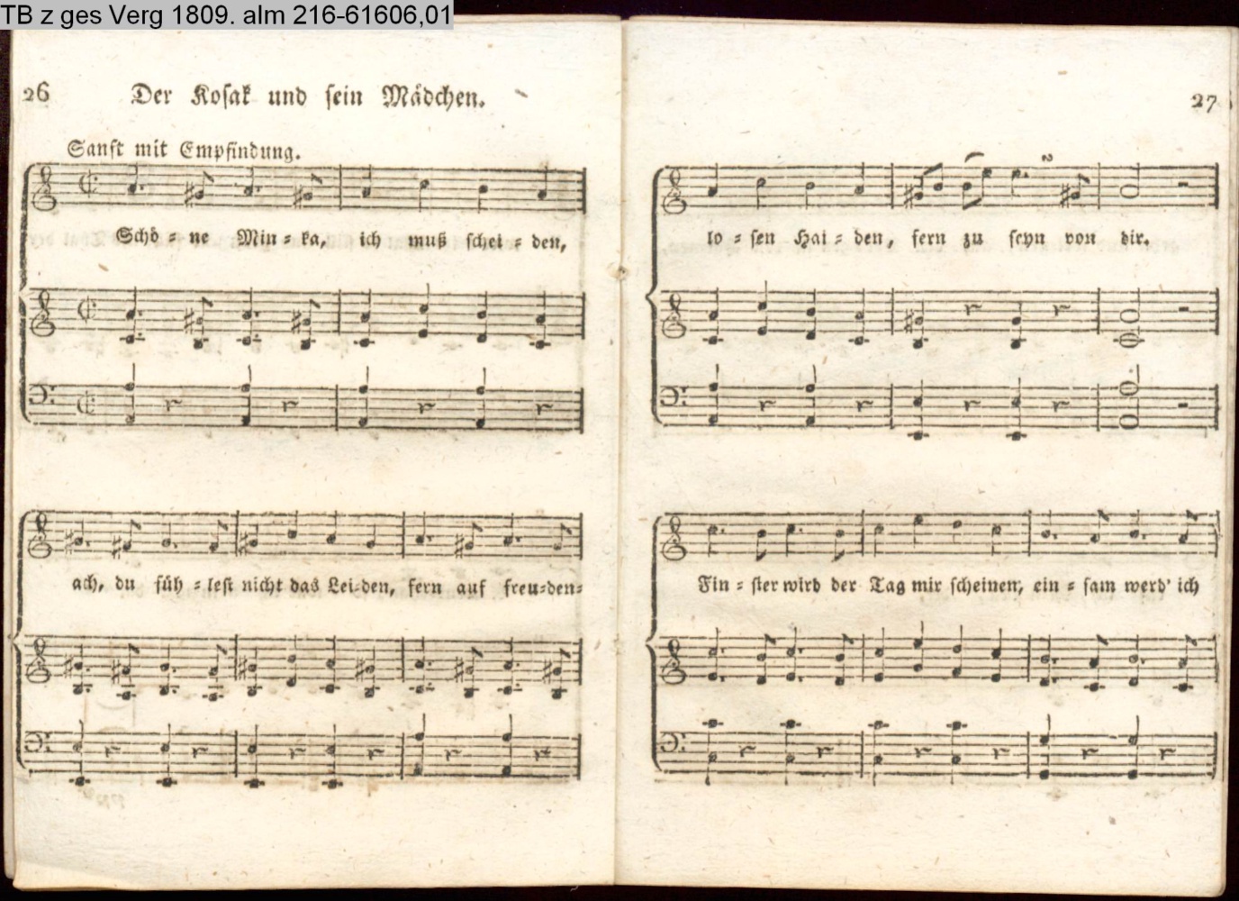 Anhang zu Beckers Taschenbuch 1809. enthaltend: Compositionen und Tänze, von Harder, Reichardt, Himmel und Bergt (Anhang INr 61598, Obj 163) (Photos 61606,01; 61606,02)