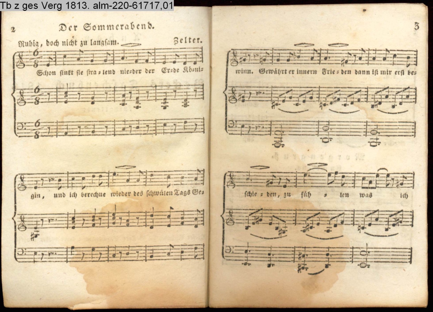 Anhang zu Beckers Taschenbuch 1813 enthaltend: Compositionen und Tänze, von Bergt, A. Harder, Methfeßel und Zelter (Sammlung INr 61716, Obj 168)