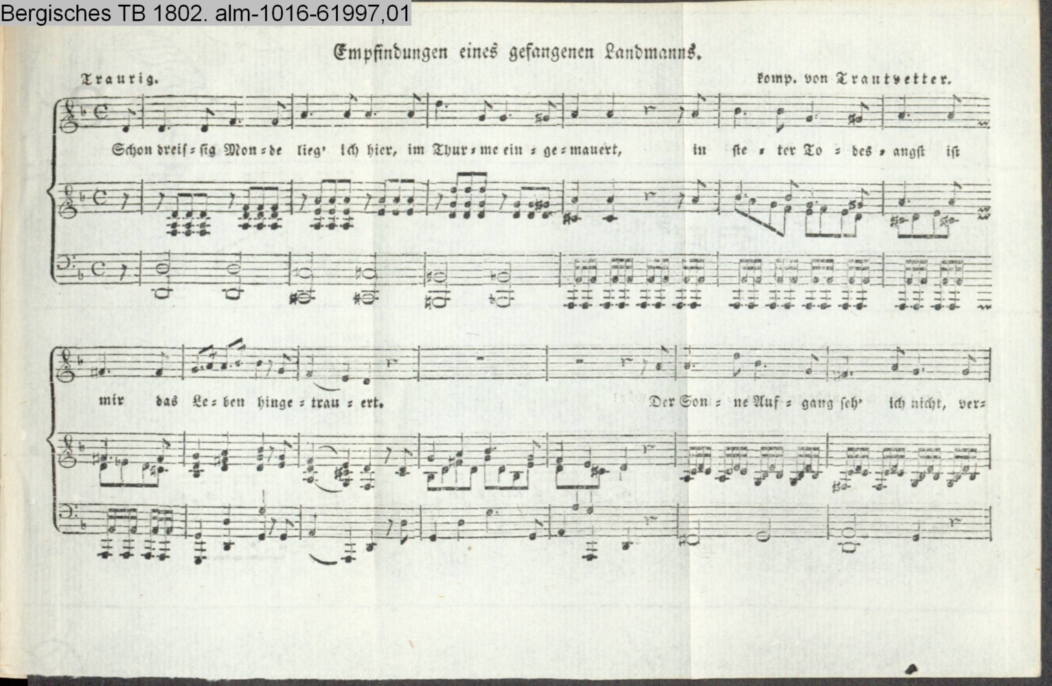 Vertonung des Gedichts »Empfindungen eines gefangenen Landmanns« von L. W. Werner