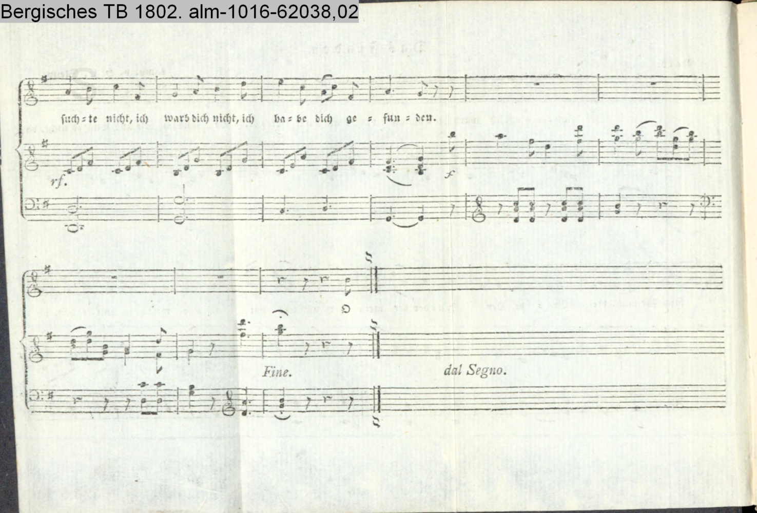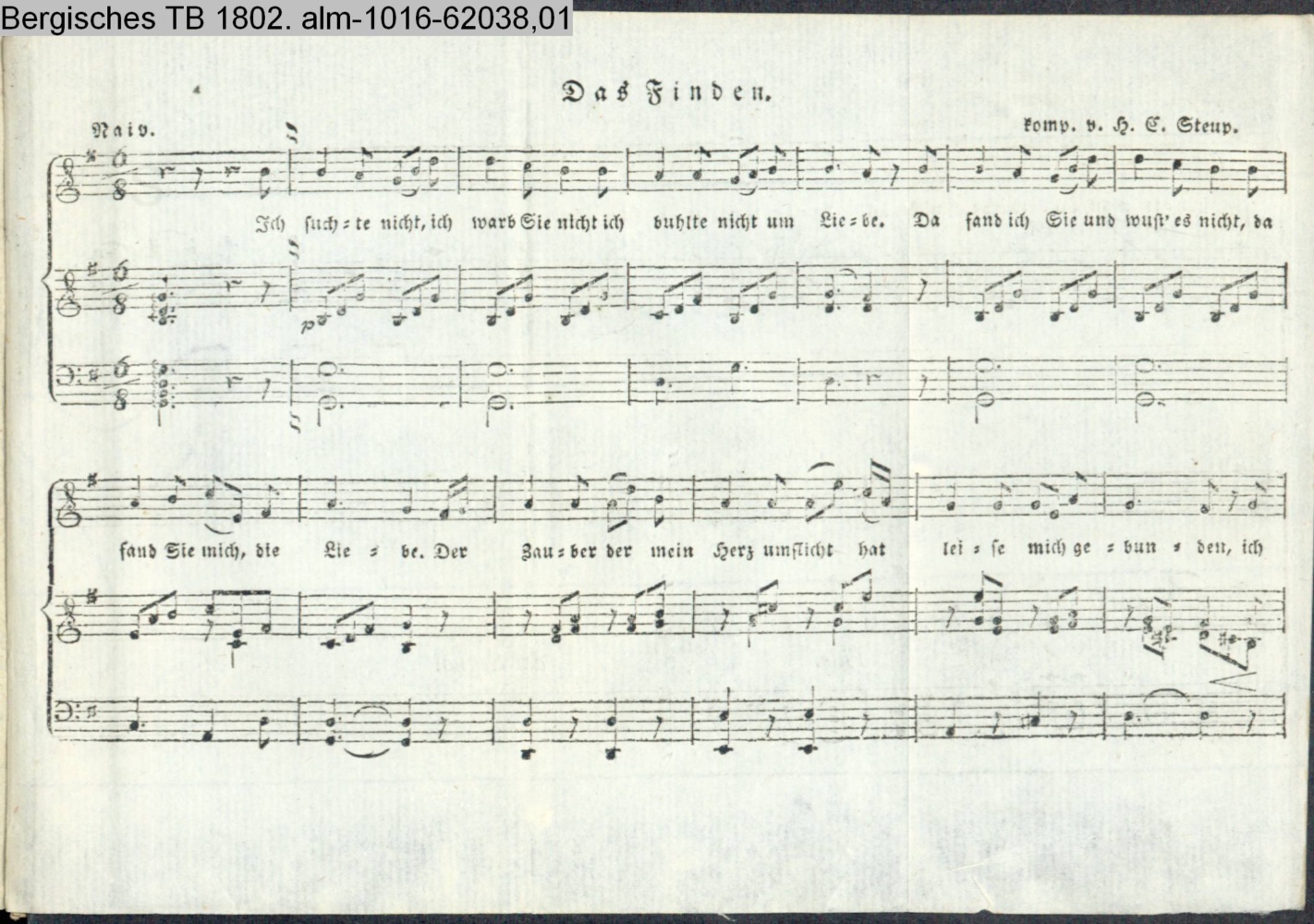 (Photos 62038,01; 62038,02) $ vermutl. Vertonung eines Gedichts aus dem Bergischen Taschenbuch 1801