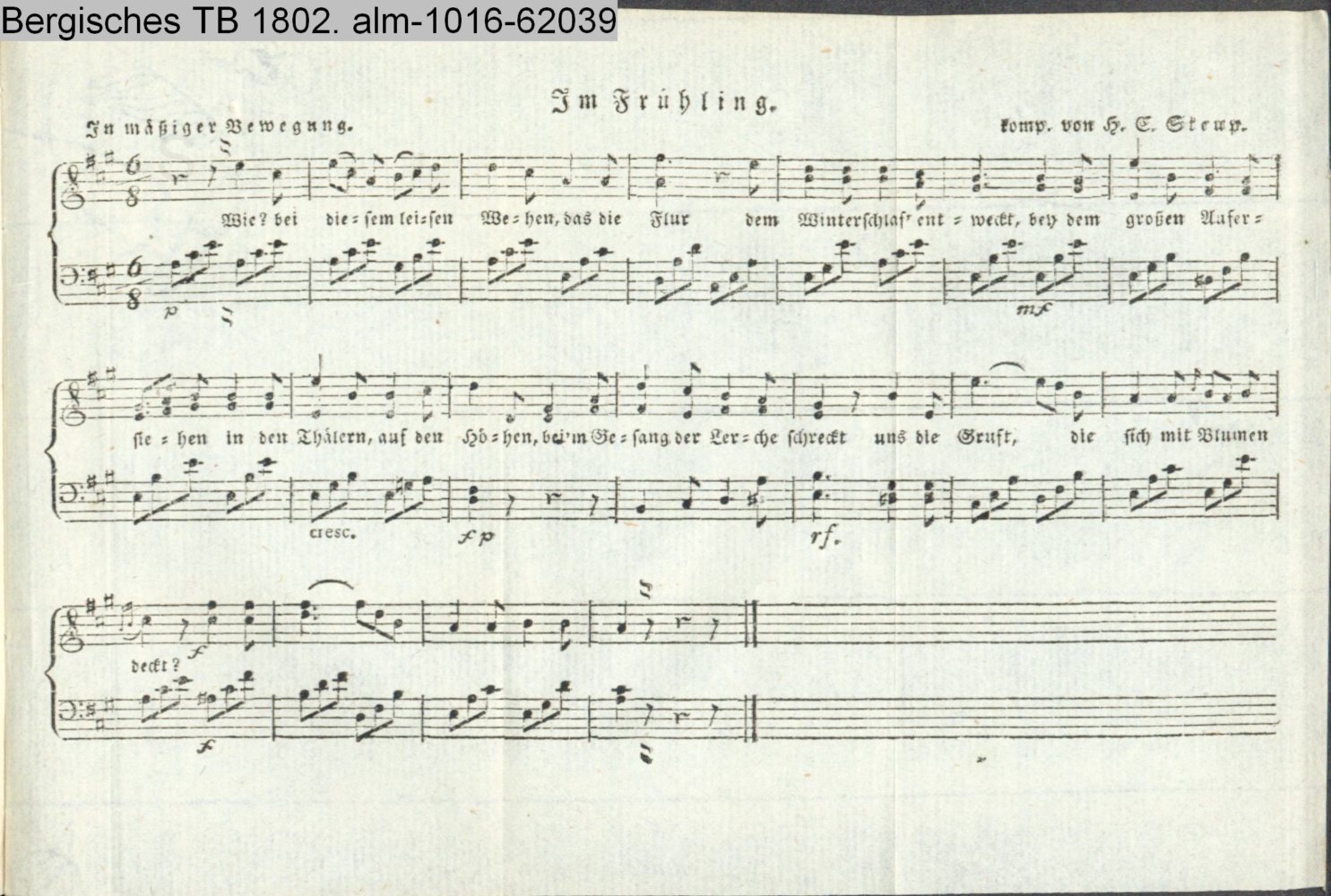 Vertonung eines Gedicht aus dem Bergischen Taschenbuch 1801