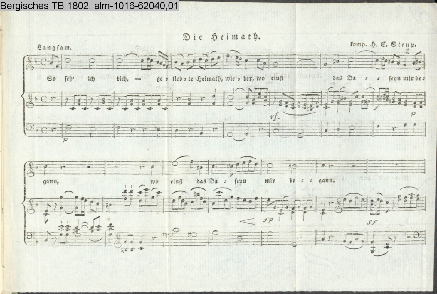 (Photos 62040,01; 62040,02) Vertonung eines Gedicht aus dem Bergischen Taschenbuch 1801