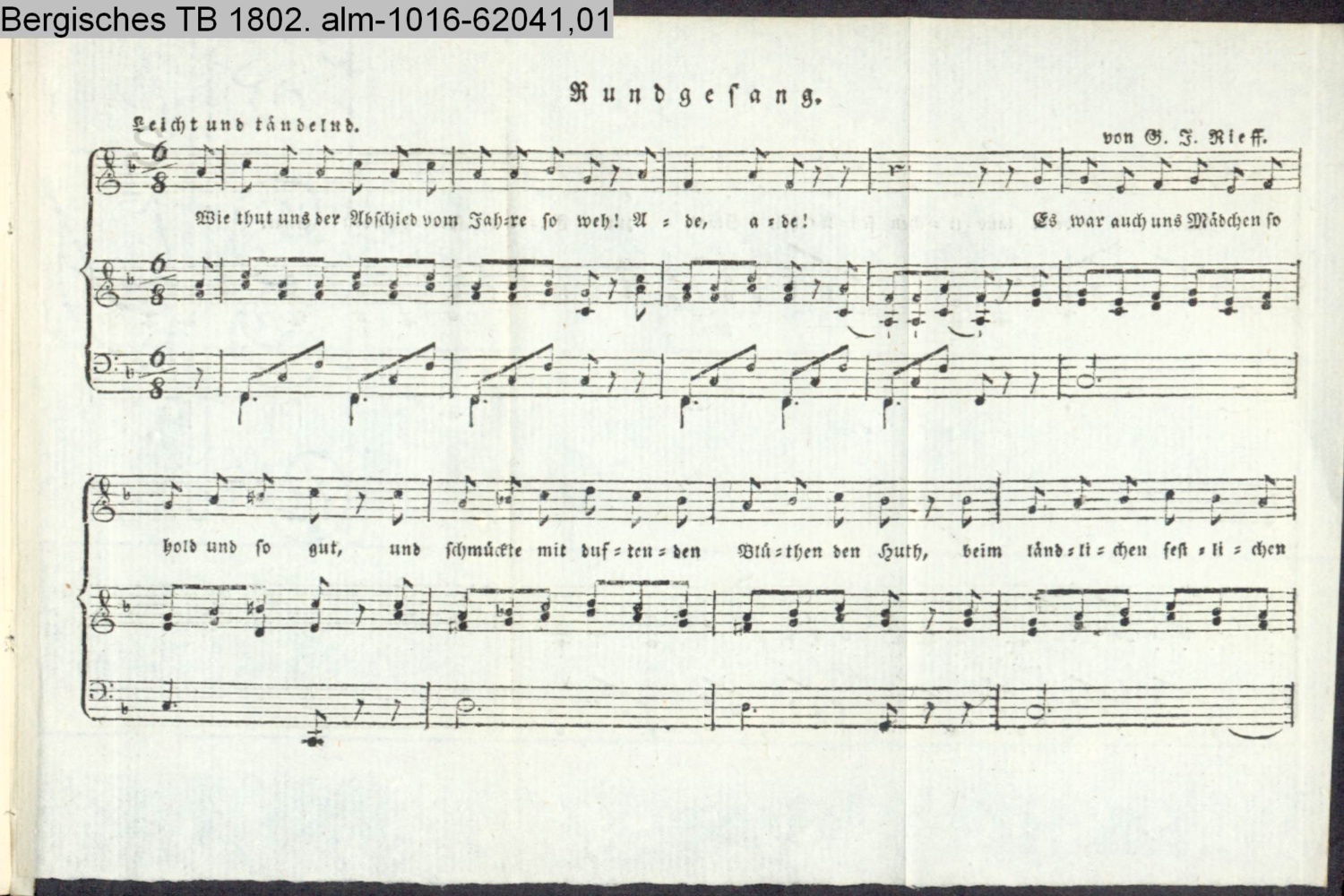 (Photos 62041,01; 62041,02) Vertonung eines Gedicht aus dem Bergischen Taschenbuch 1801