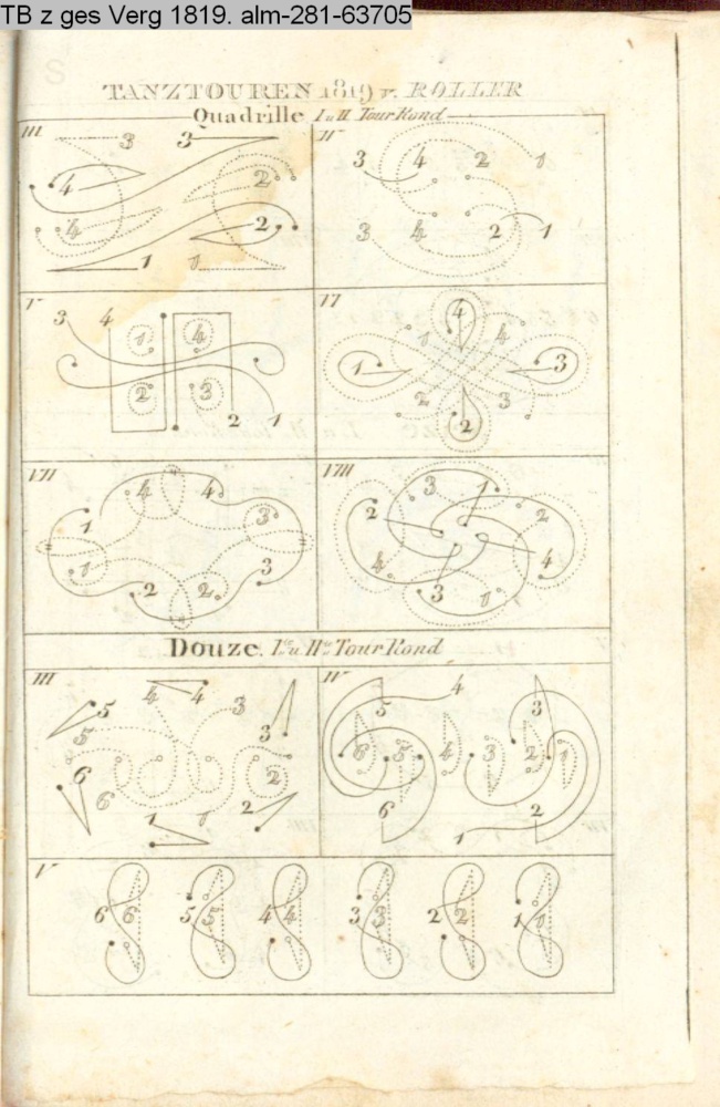 TANZTOUREN 1819 v. ROLLER / Quadrille I. u. II. Tour Rond / Douze Ite. u. IIte Tour Rond