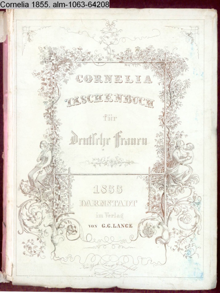CORNELIA / TASCHENBUCH / für / Deutsche Frauen / 1855 / DARMSTADT / im Verlag / VON G. G. LANGE / New-York Lange & Kronfeld / William Street 202. Store No. 3