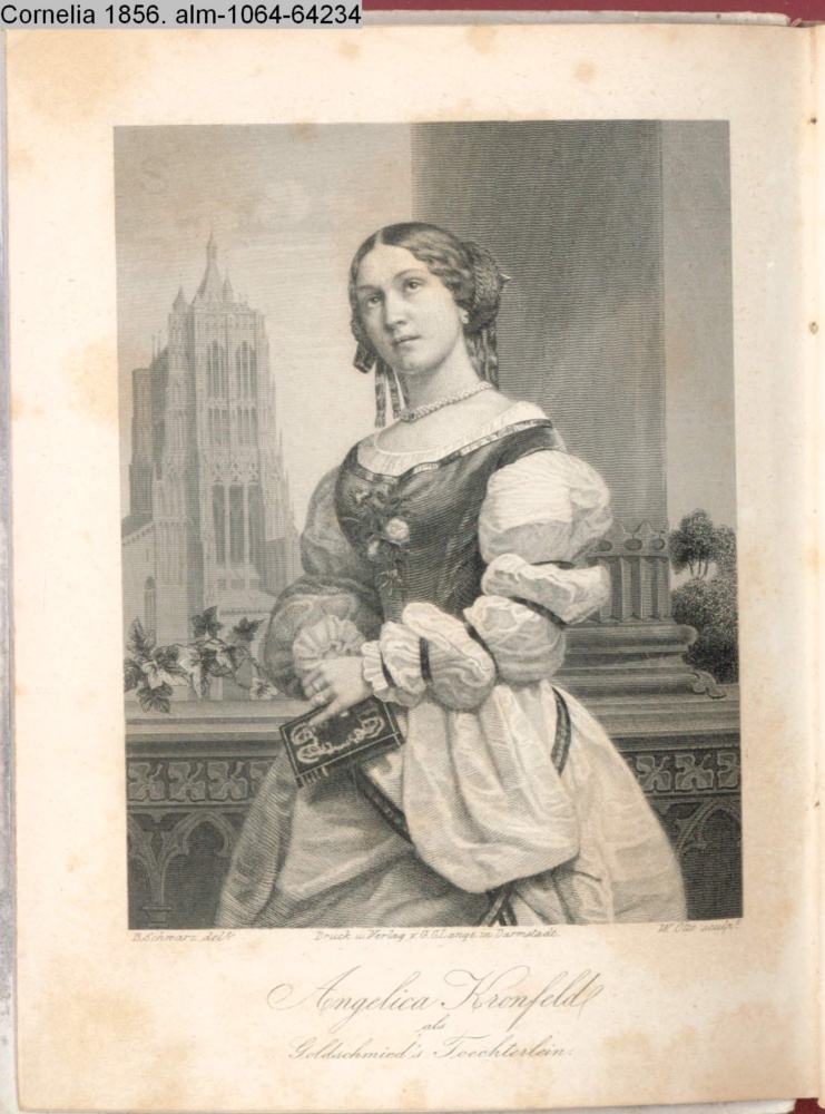 CORNELIA / TASCHENBUCH / FÜR / Deutsche Frauen / auf das / JAHR / 1856 / BEGRÜNDET / VON / ALOYS SCHREIBER / und / fortgesetzt / von J. W. Appell / 41r JAHRGANG / DARMSTADT / DRUCK & VERLAG v. GUSTAV GEORG LANGE