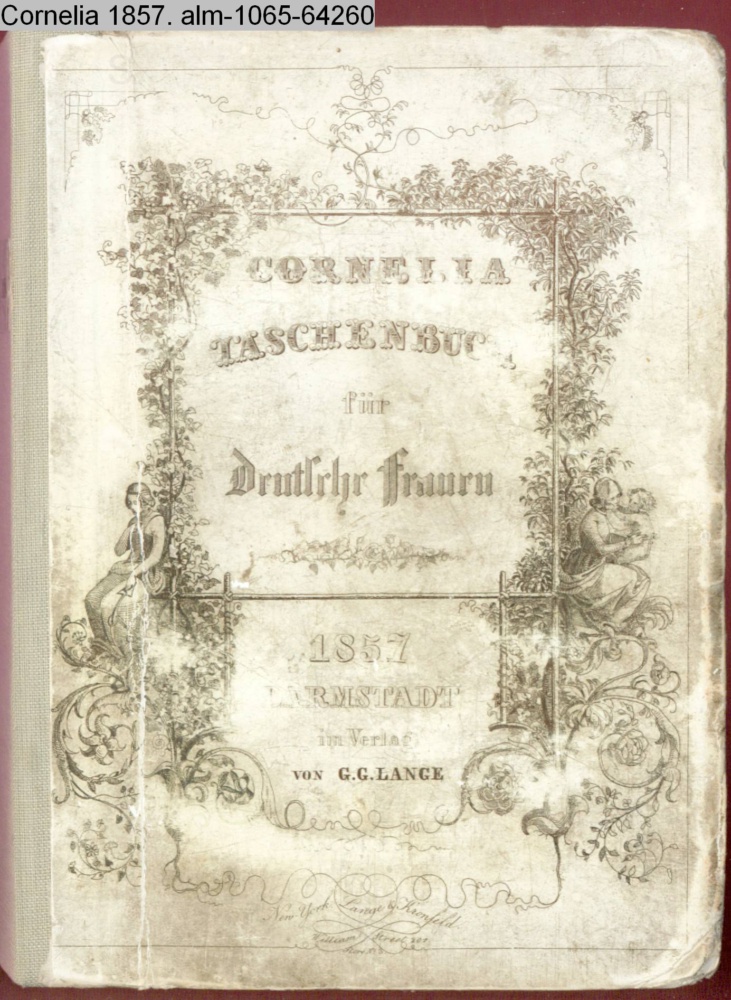 CORNELIA / TASCHENBUCH / für / Deutsche Frauen / 1857 / DARMSTADT / im Verlag / VON G. G. LANGE / New-York Lange & Kronfeld / William Street 202. Store No. 3