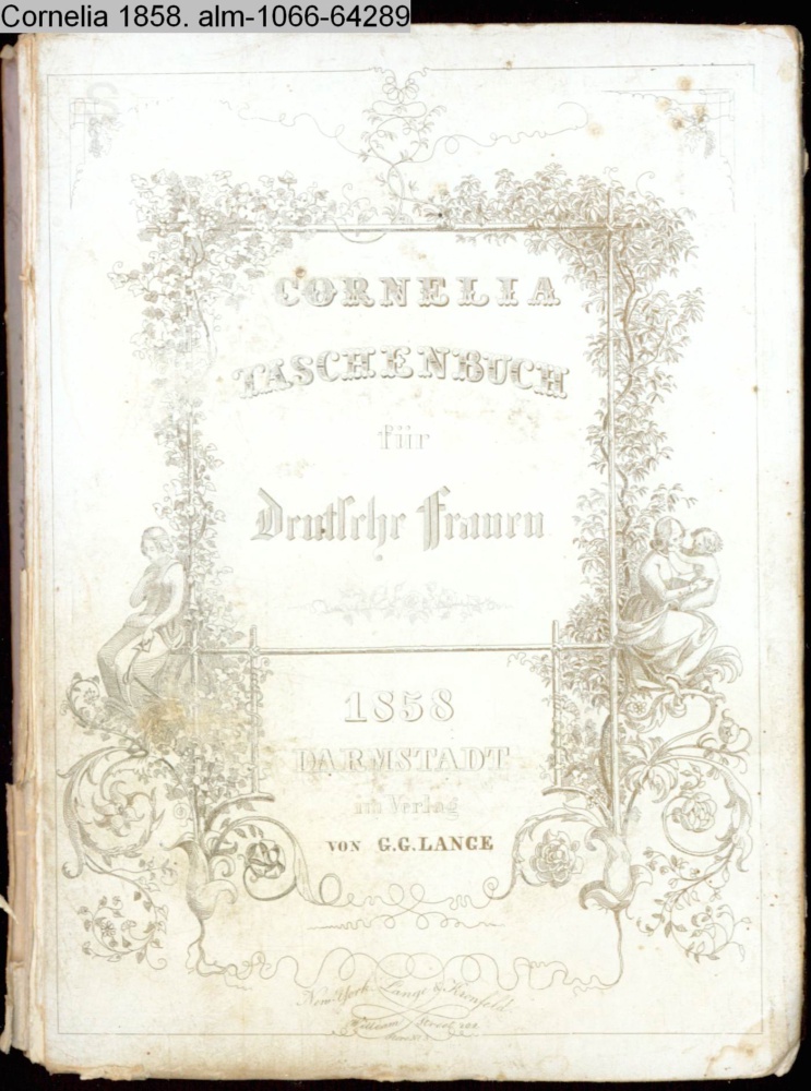 CORNELIA / TASCHENBUCH / für / Deutsche Frauen / 1858 / DARMSTADT / im Verlag / VON G. G. LANGE / New-York Lange & Kronfeld / William Street 202. Store No. 3