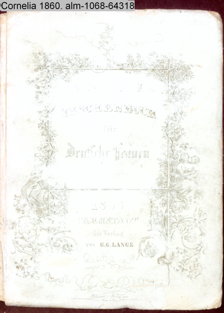 CORNELIA / TASCHENBUCH / für / Deutsche Frauen / 1860 / DARMSTADT / im Verlag / VON G. G. LANGE / New-York Lange & Kronfeld / William Street 202. Store No. 3