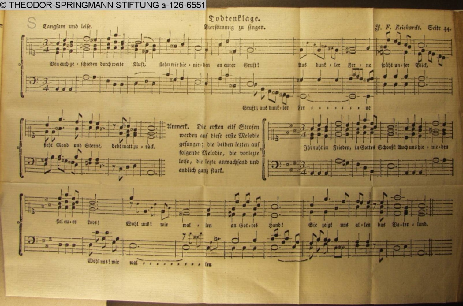 Vertonung des Gedichts »Todtenklage« von Fr. L. Gr. z. Stolberg