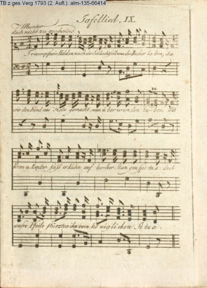 IX. / Tafellied / nach / einem gesellschaftlichen Vogelschießen. / Mel. ist neu und gest.