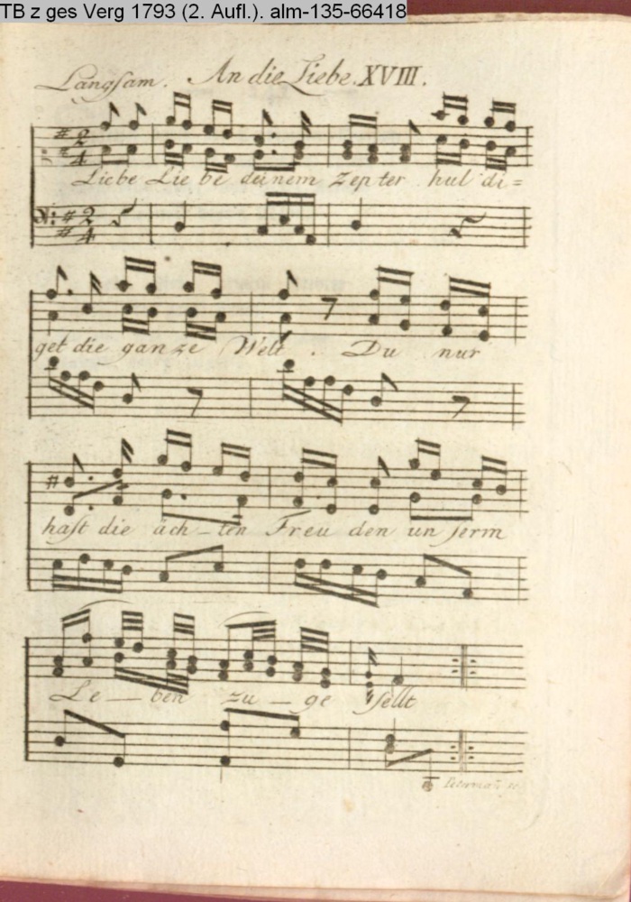 XVIII. / An die Liebe. / Rodeau. / Mel. ist neu und gest.