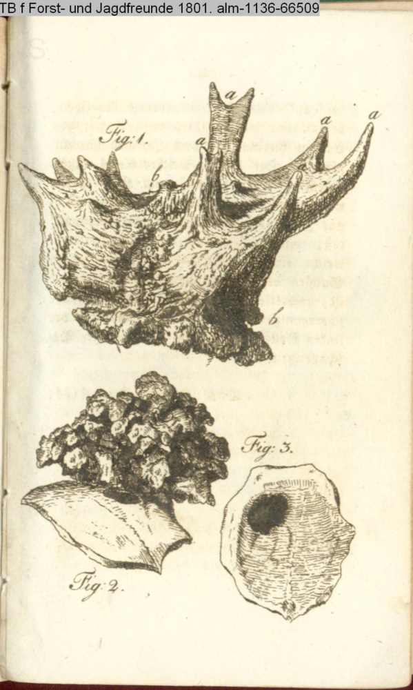 Illustration zu »Sendschreiben an den Herausgeber, einige Bemerkungen über das jährliche Abwerfen und Wiederaufsetzen der Geweihe, nebst Untersuchungen über die Entstehungsart einer besonderen Hornkrankheit unter den Hirschen, Rehböcken, u.s.f. enthaltend« von Dr. Klett zu Erbach INr 66508, Obj 23