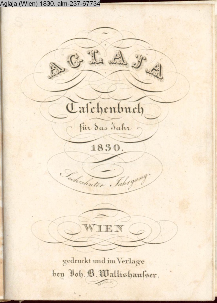 AGLAJA / Taschenbuch / für das Jahr / 1830. / Sechzehnter Jahrgang. / WIEN / gedruckt und im Verlage / bey Joh. B. Wallishauser
