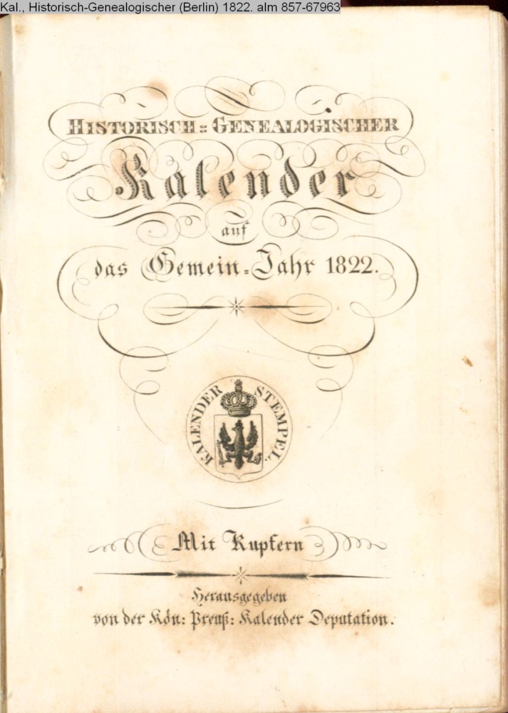 Kalender, Historisch-Genealogischer (Berlin) 1822