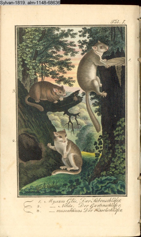 1. Myoxus Glis. Der Siebenschläfer. / 2. - Nitela. Der Gartenschläfer. / 3. - muscardinus. Der Gartenschläfer