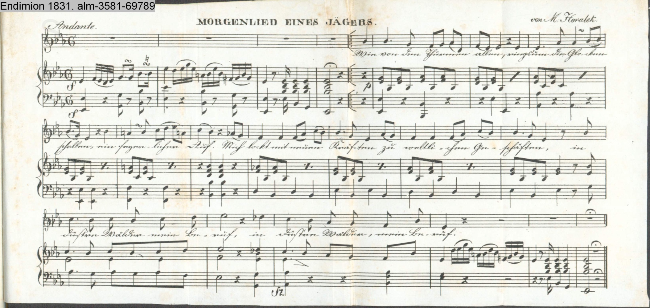 Vertonung des Gedichts »Morgenlied des Jägers, am Sonntage auf dem Wege in den Wald« von Kramer