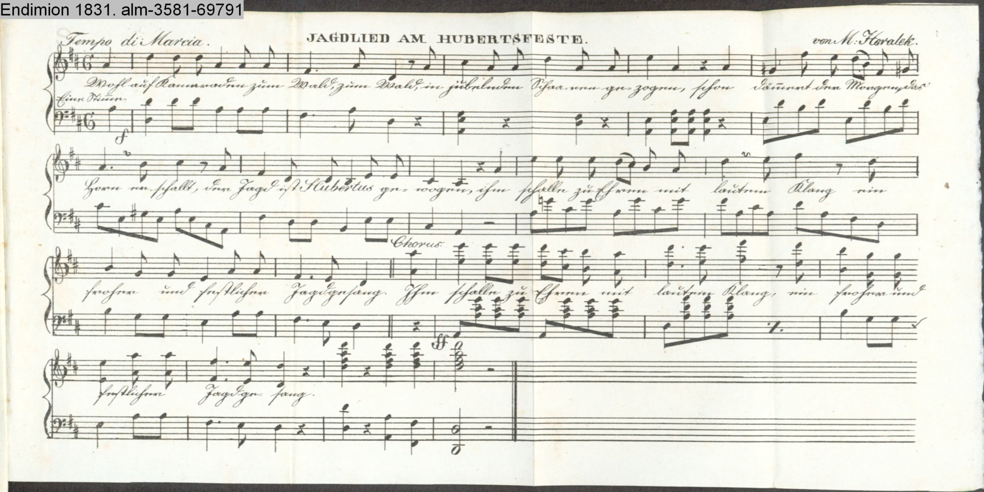 Vertonung des Gedichts »Jägerlied am Hubertustage zu singen« von v. Wildungen
