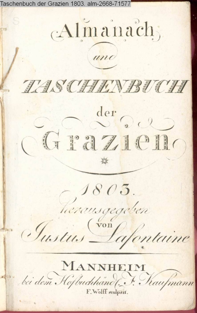Almanach / und / TASCHENBUCH / der / Grazien / 1803. / herausgegeben / von / Justus Lafontaine / MANNHEIM / bei dem Hofbuchhändl. F. Kaufmann