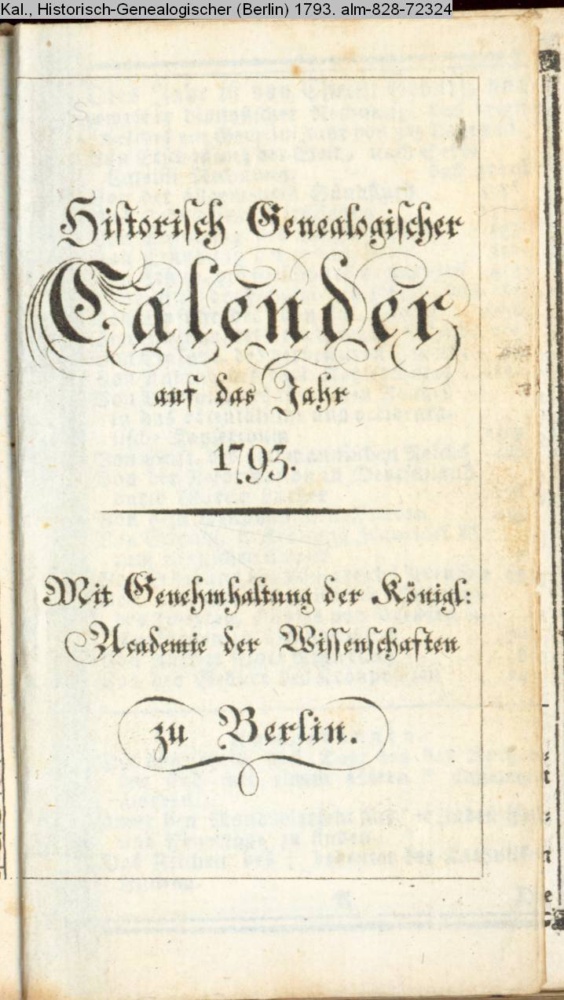 Kalender, Historisch-Genealogischer (Berlin) 1793