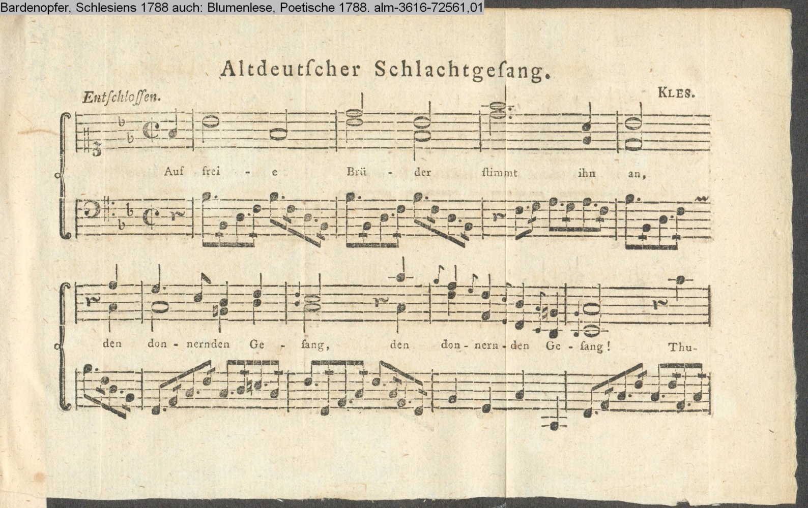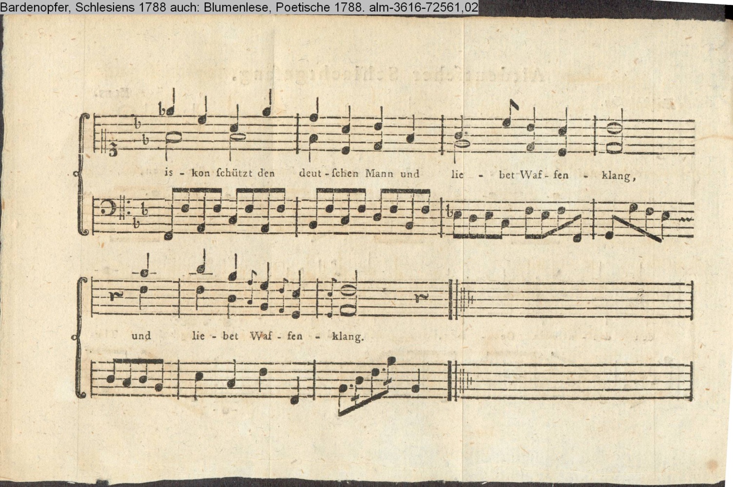 Bardenopfer, Schlesiens 1788; auch: Blumenlese, Poetische 1788, S. 50