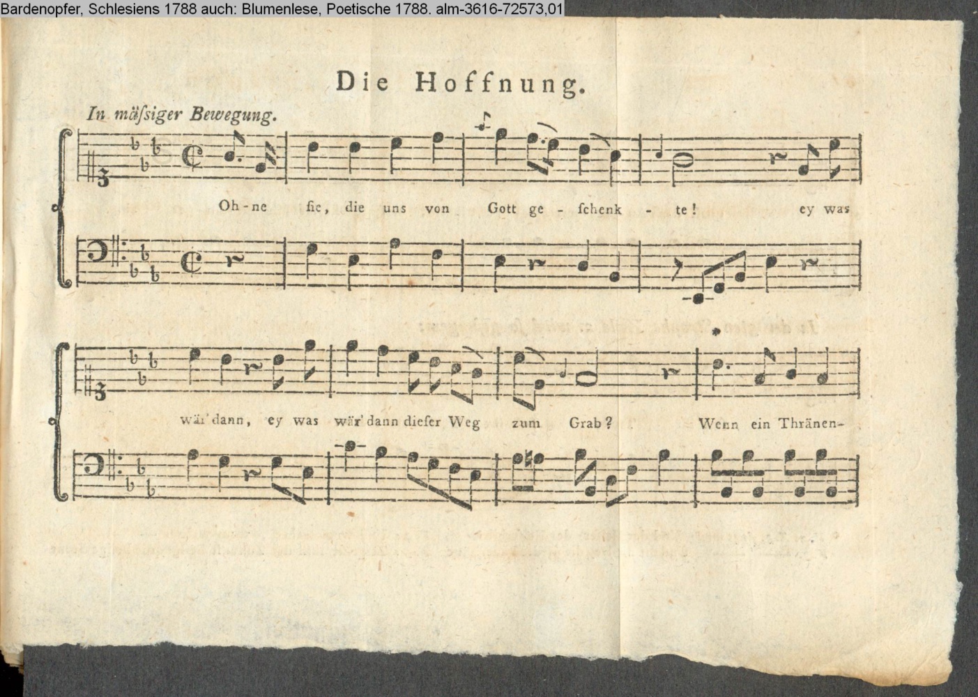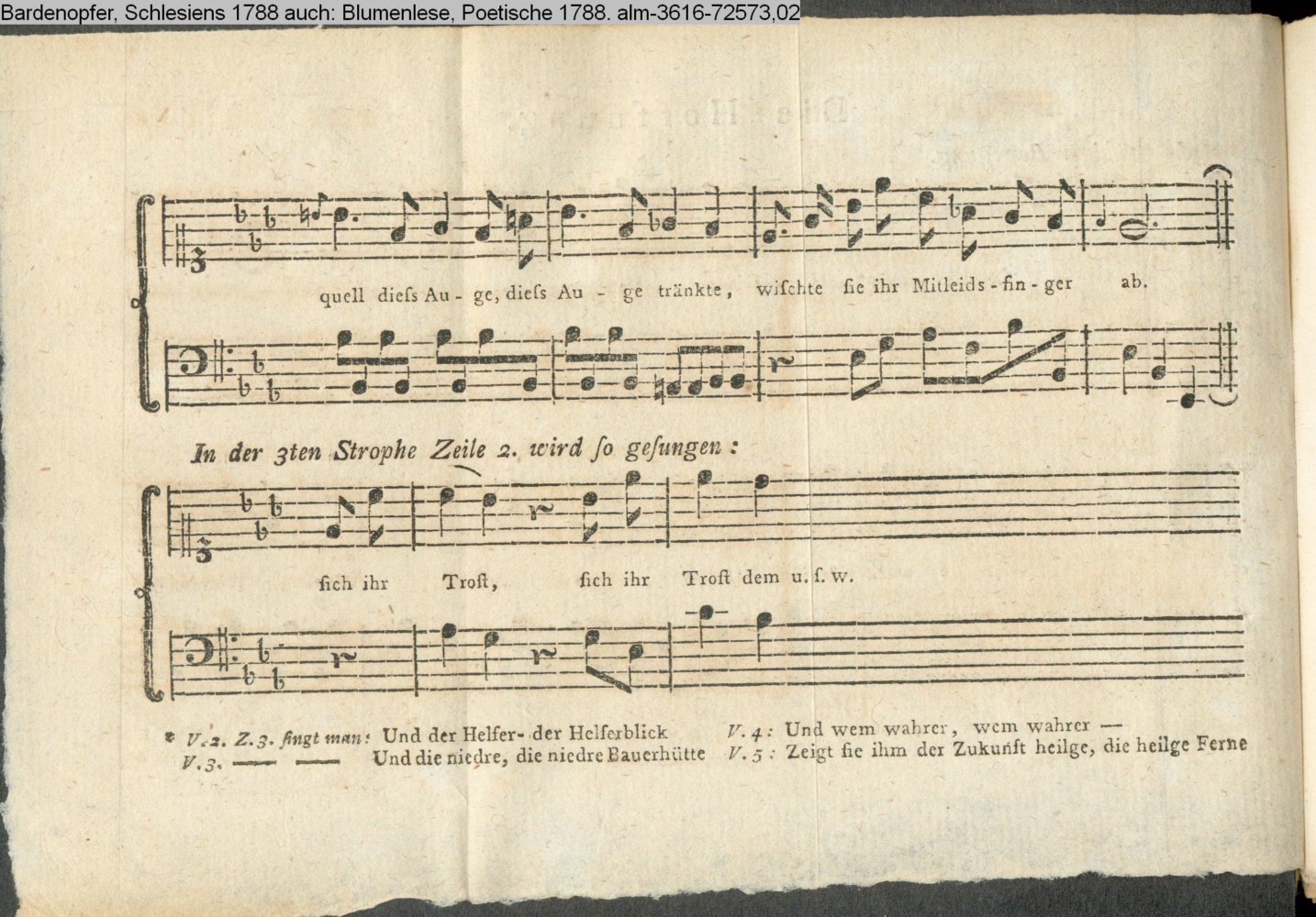 Bardenopfer, Schlesiens 1788; auch: Blumenlese, Poetische 1788, S. 78