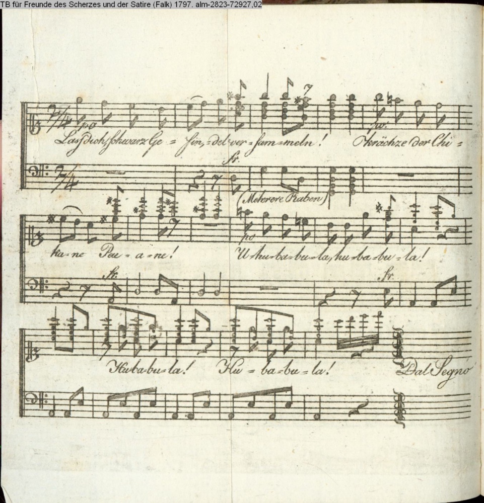 Vertonung zu »Die Uhu'. Eine dramatisch-satyrische Rhapsodie, mit Chören von Uhu'n, Raben und Nachteulen«