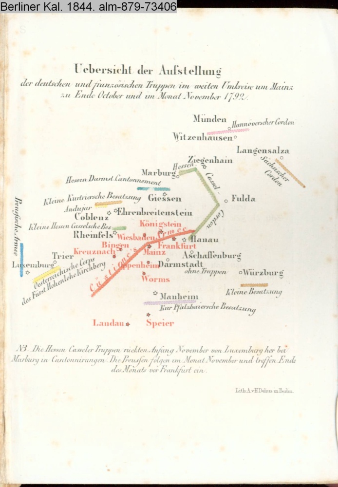 Uebersicht der Aufstellung / der deutschen und französischen Truppen im weiten Unkreise um Mainz / zu Ende October und im Monat November 1792