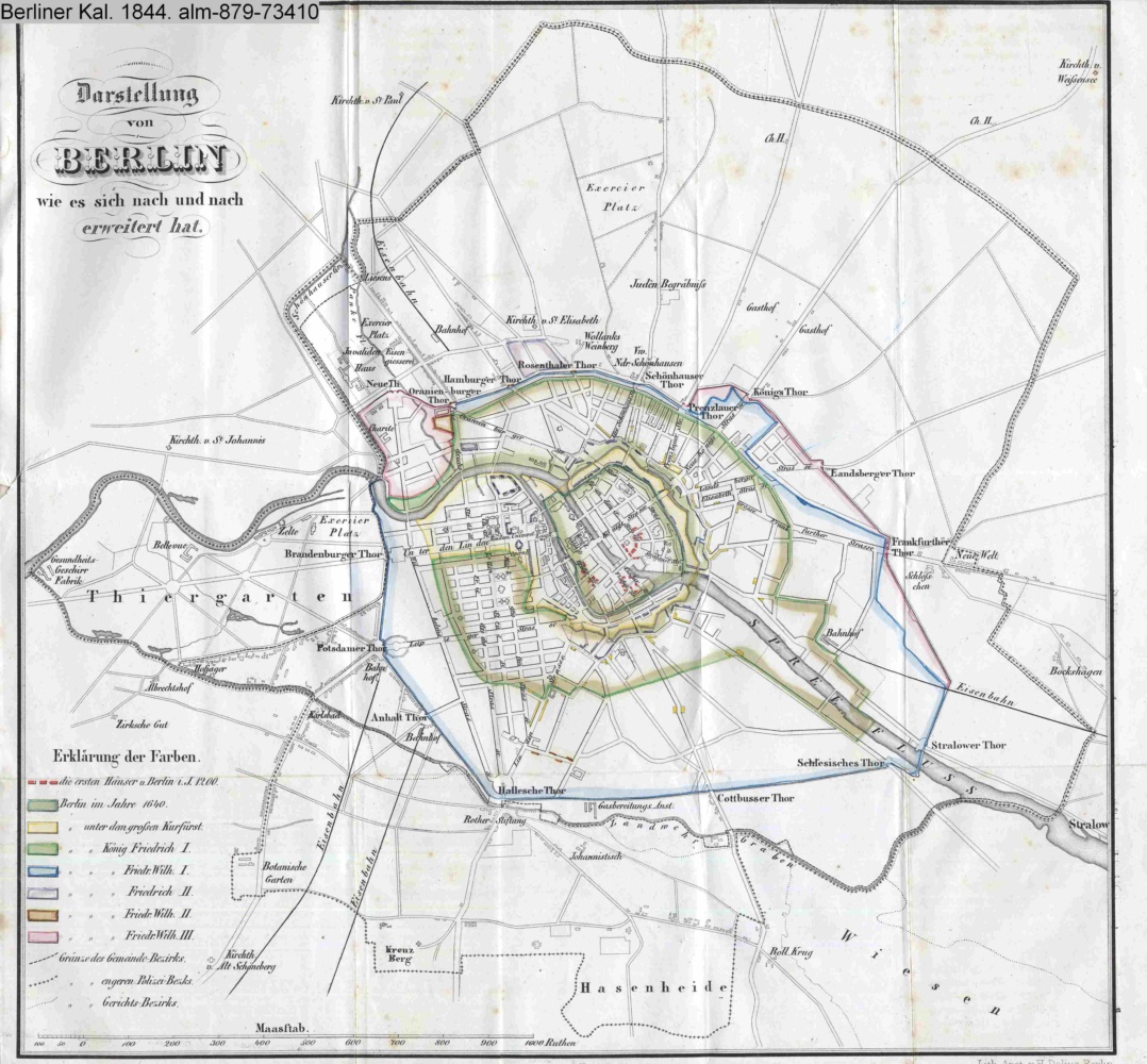 ausfaltbare kolorierte Karte. Beigabe zu »Statistische Uebersicht der Stadt Berlin« von K. F. W. Dieterici