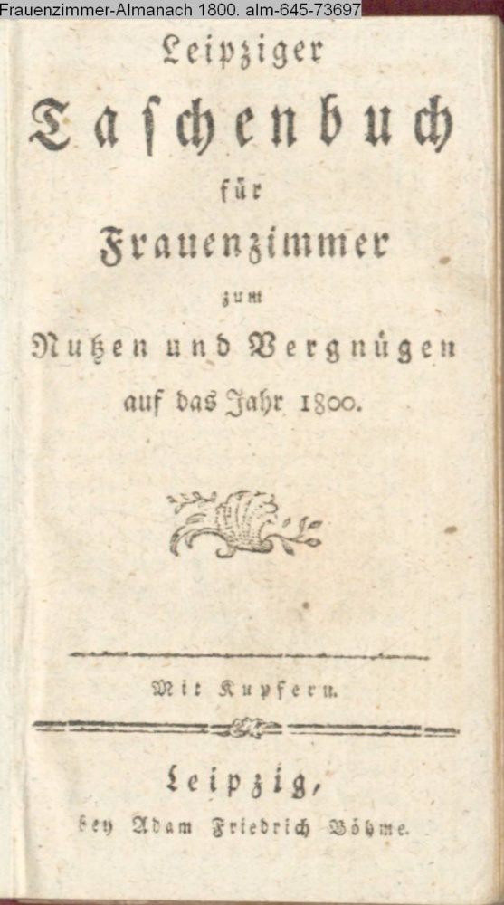 Leipziger / Taschenbuch / für / Frauenzimmer / zum / Nutzen und Vergnügen / auf das Jahr 1800. / Mit Kupfern. / Leipzig, / bey Adam Friedrich Böhme