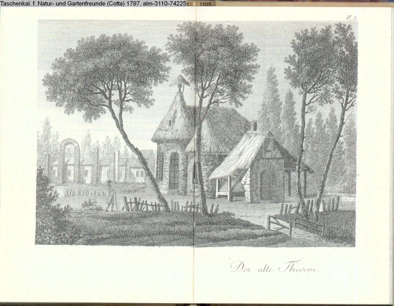 Illustration zu »Beschreibung des Gartens in Hohenheim. Zweite Fortsetzung. / Der alte Thurm« von G. H. Rapp INr 74224, Obj 18