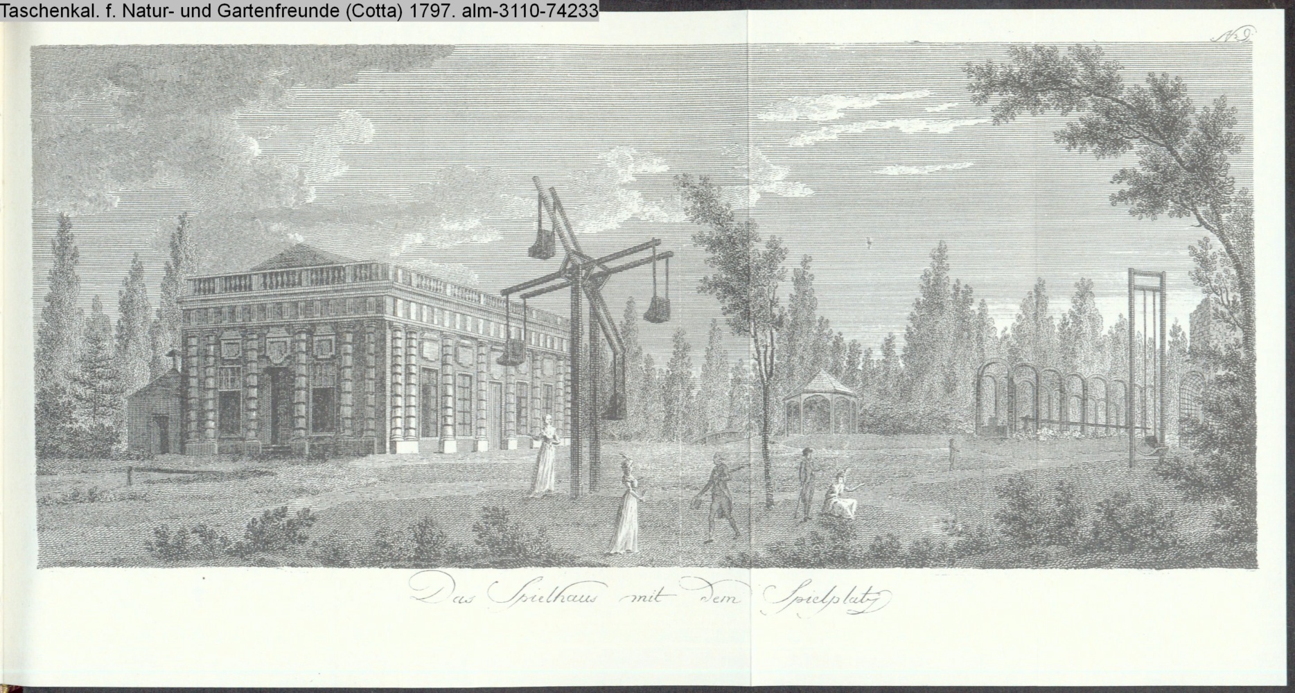 ausfaltbare Illustration zu »Beschreibung des Gartens in Hohenheim. Zweite Fortsetzung. / Dass Schauspielhaus mit dem SpielPlatz« von G. H. Rapp INr 74232, Obj 26