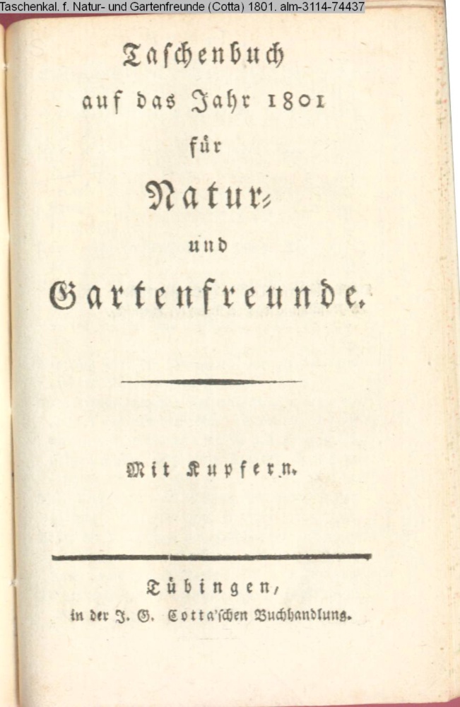 Auf dem Nachtitelblatt verso: Der Preiß dieses Taschenbuchs ist gebunden 1 Rthlr. 8 gr. sächsisch oder 2 fl. 24 kr. rheinisch