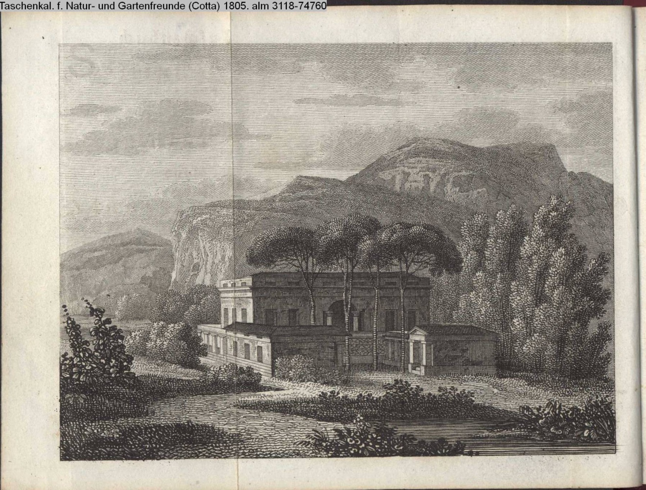 ausfaltbare Titelgraphik. Illustration zu »Einige Vorschläge zu Garten- Gebäuden. 1) Ein Landhaus in alt-römischem Styl von einem Ungenannten«