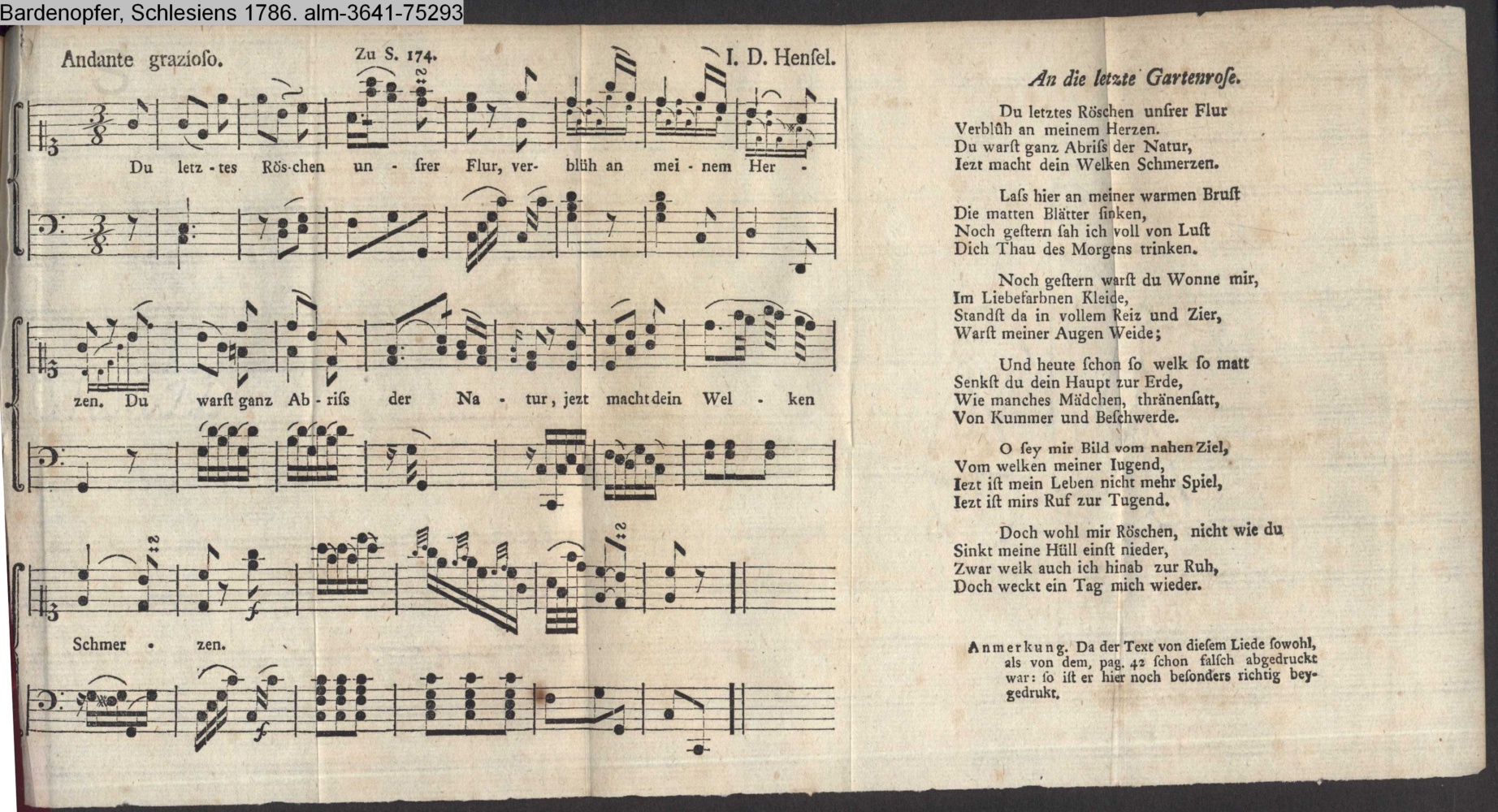 Vertonung des Gedichts »An die letzte Gartenrose« von Friederike v. Hirsch