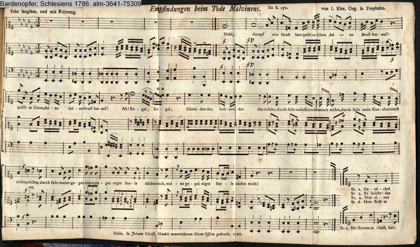 Vertonung des »Gedichts »Empfindungen beim Tode Malvinens« von J. J. Kausch