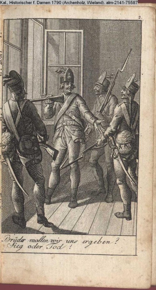 Illustration zu »Einige Denkmahle des Edelmuths und der Tapferkeit aus dem jetzigen Kriege wider die Türken / 2. Großer Muth einiger Oesterreichischen Soldaten« INr 75607, Obj 32