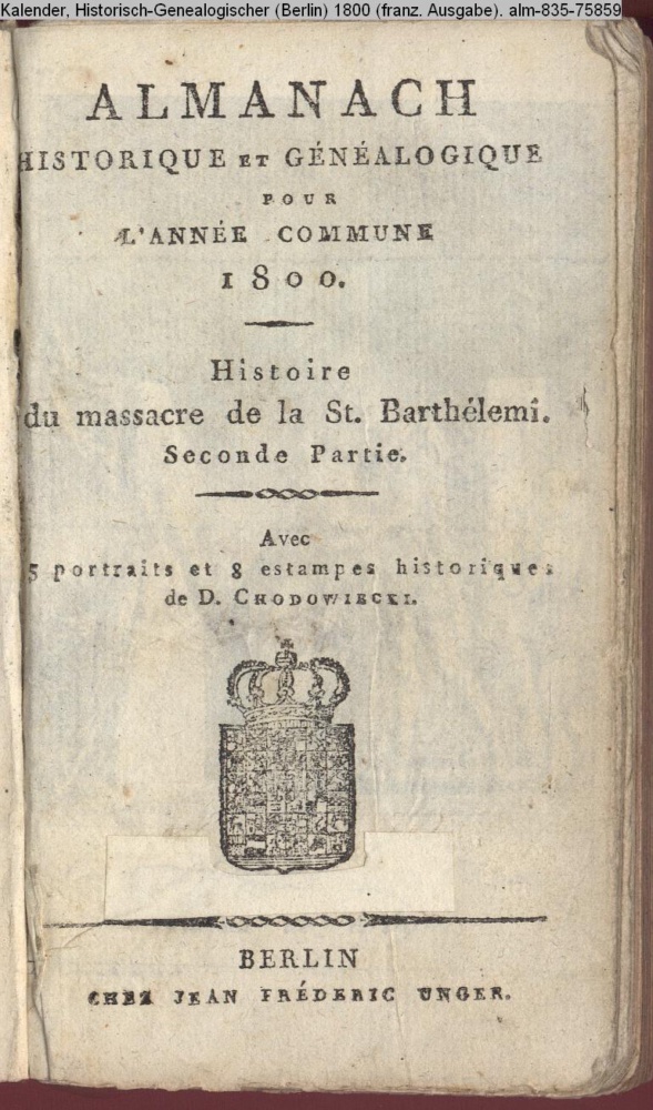 Kalender, Historisch-Genealogischer (Berlin) 1800 (franz. Ausgabe: Almamac Historique et Généalogique 1800), Nr. 75859