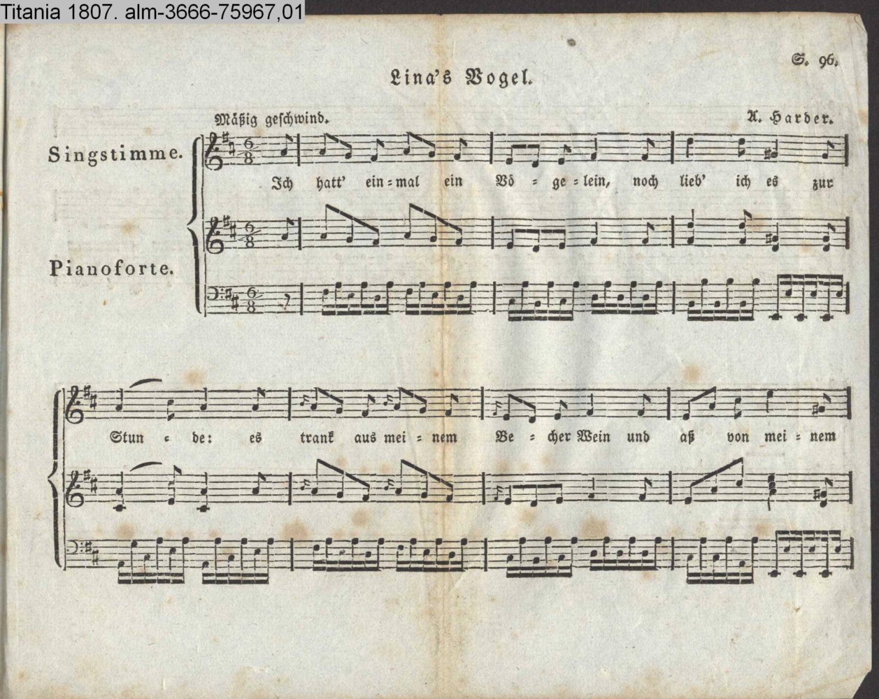 Vertonung des Gedichts »Lina's Vögelein« von F. K. Lang