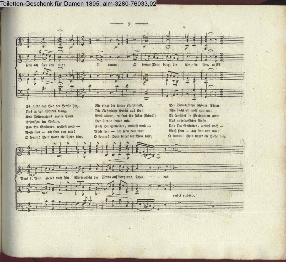 Schon färbt der Sonne lezter Strahl den Wald mit hoher Glut, Dunkel überzieht das Thal, wo bald die Arbeit ruht…