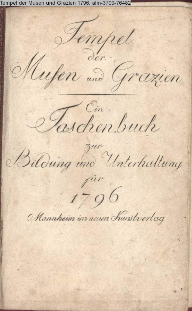 Tempel / der Musen und Grazien / Ein / Taschenbuch / zur / Bildung und Unterhaltung / für / 1796 / Mannheim im neuen Kunstverlag