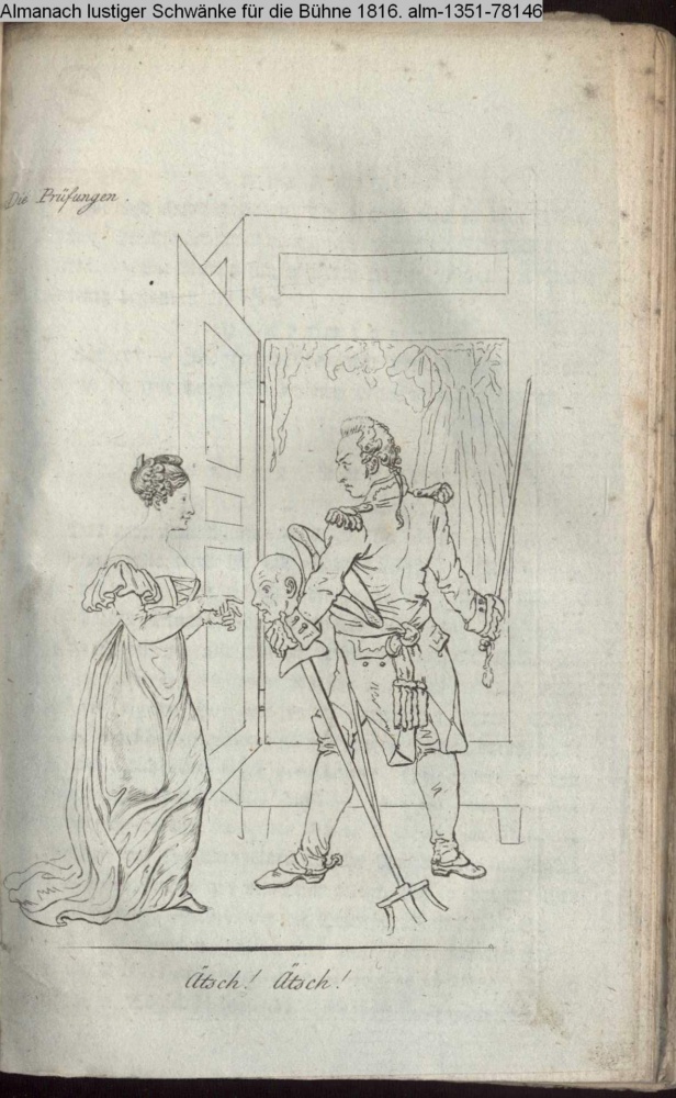 Illustration zu »Aetsch! Aetsch! oder die Prüfungen. Ein Lustspiel in Einem Aufzuge« von Th. H. Friedrich