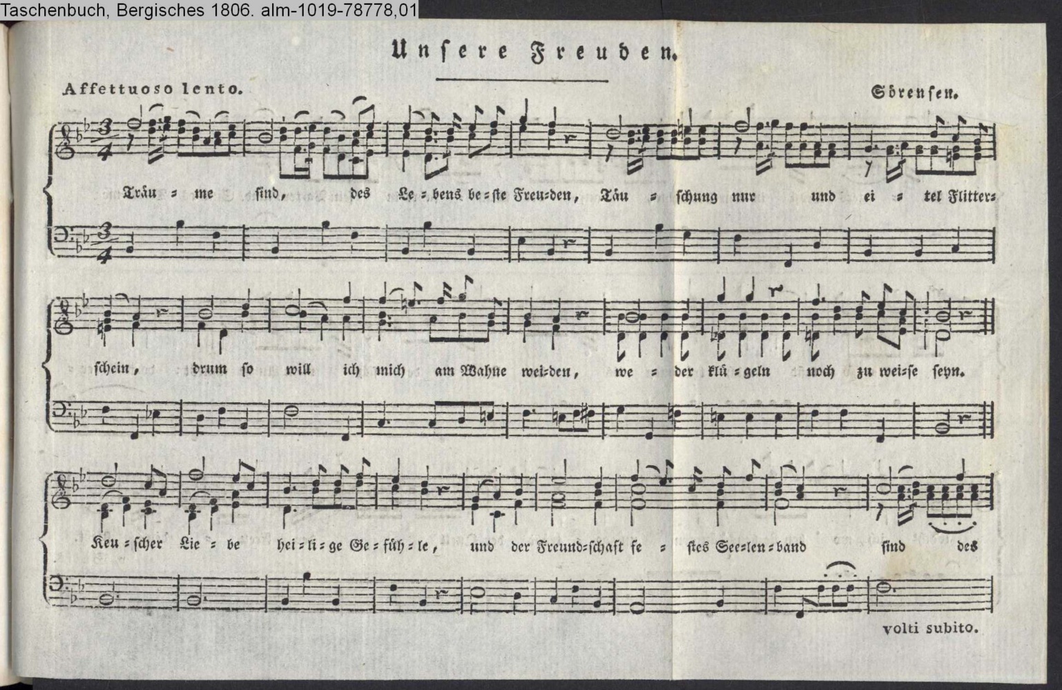Vertonung des Gedichts »Unsere Freuden« von J. G. von Salis-Seewis