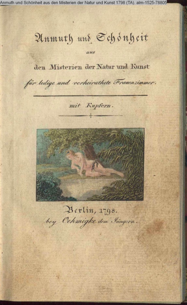 Anmuth und Schönheit / aus / den Misterien der Natur und Kunst / für ledige und verheirathete Frauenzimmer. / mit Kupfern. / Berlin, 1797. / bey Oehmigke dem Jüngern